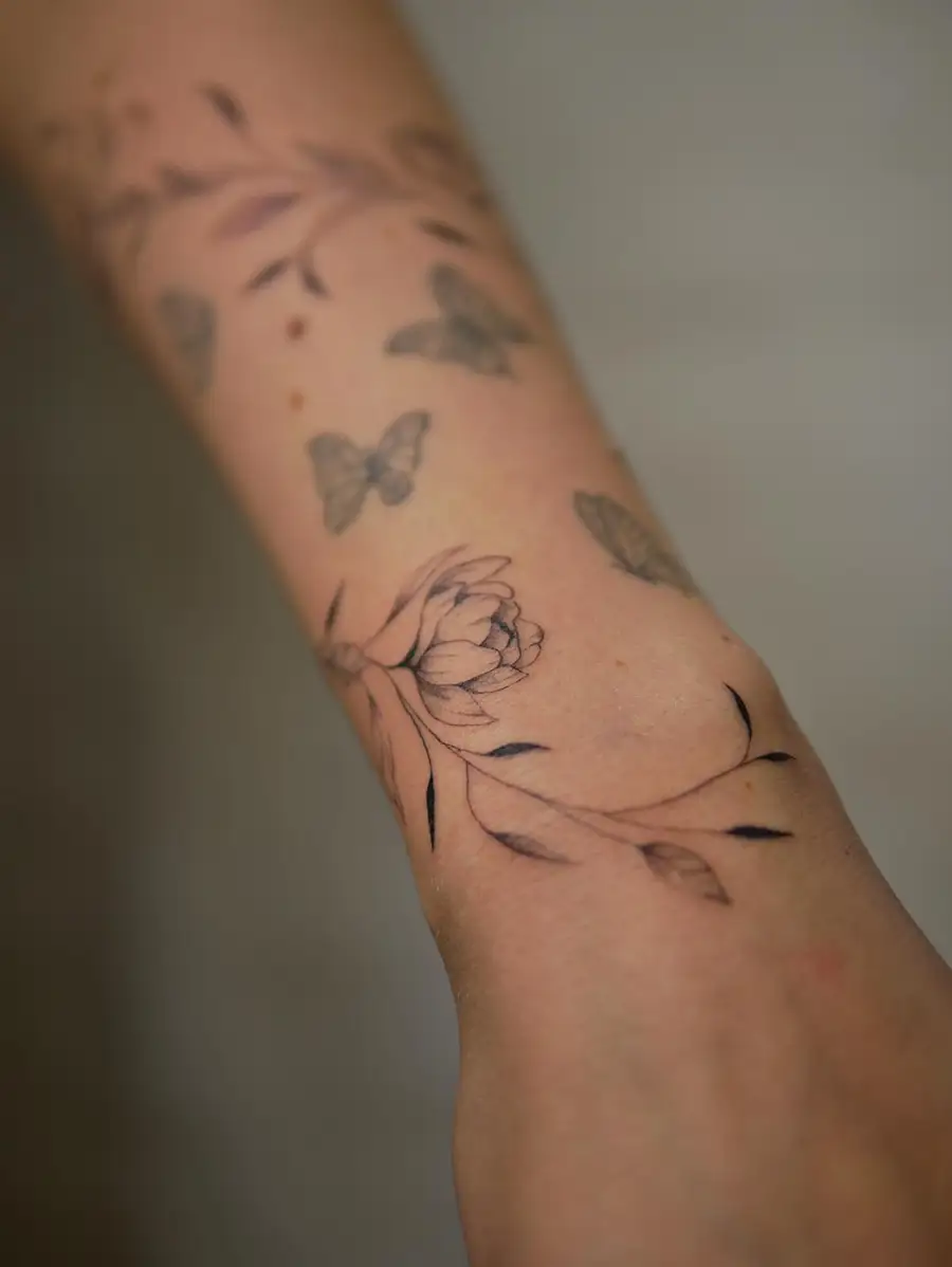 Mein Stil sind feine, kleine Motive – klar, detailreich und mit präzisen Linien oder sanften Schattierungen. Gleichzeitig freue ich mich darauf, auch größere Projekte anzugehen und meinen Stil stetig weiterzuentwickeln.