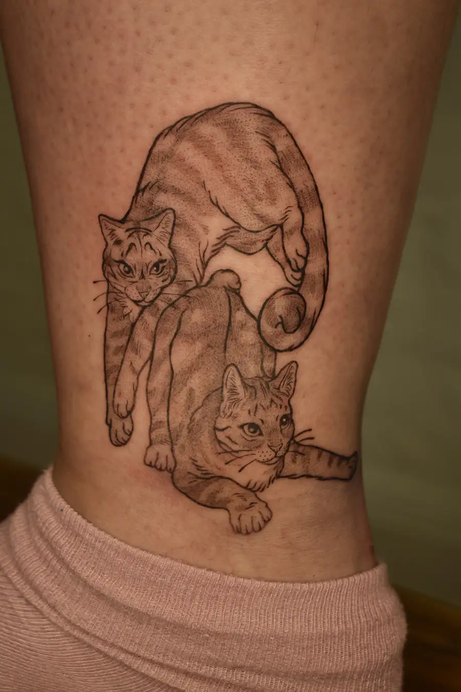 Schnell durfte ich meine Kunst auf Reisen weiterentwickeln und in verschiedenen Orten der Welt wie Griechenland, Australien und Asien ausleben. Jede Station hat meinen Stil geprägt und meine Liebe zum Tätowieren noch stärker gemacht.